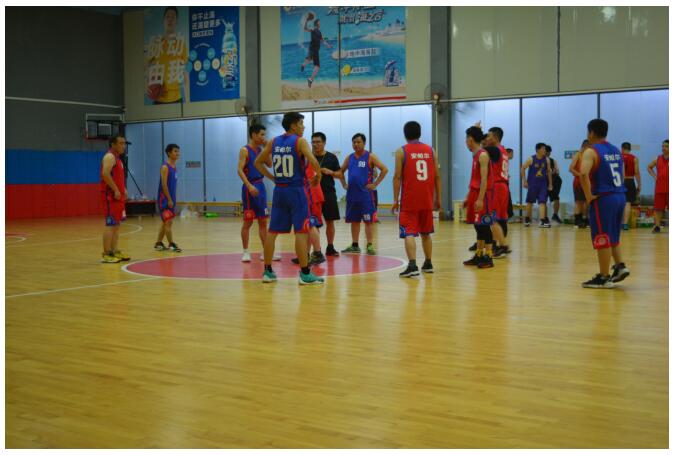 隨著裁判的一聲哨響,整個球場充滿了緊張的氣氛,大家雖然在場下是親密無間的同事,但在球場上卻是你爭我趕,你搶我奪,各自較勁,互不相讓,不放過任何一個得分的機會。每個隊員都積極跑位,為隊友作掩護,還不時有精妙的傳球、漂亮的配合和精彩的上籃。